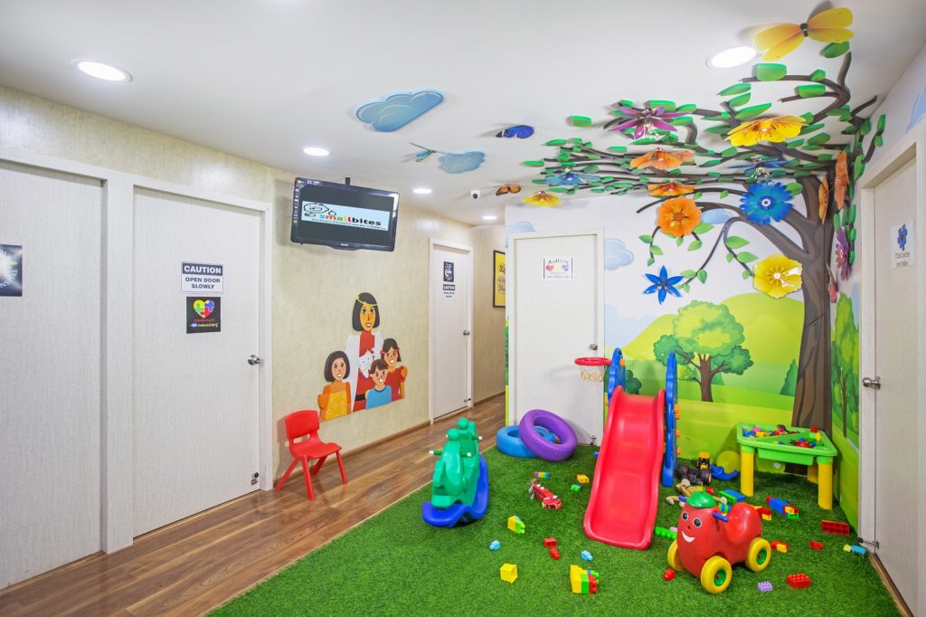 Small Bites (Indiranagar & Bhartiya City) in addition to Dr Toothlittle (Kalyanagar and Whitefield) are India’s first exclusive ‘Sensory Adaptive Dental Care Centres (SADE) for children in Bengaluru. Child-led and playful, our centers have a multi-sensorial large play area with toys & games, specially designed fun-themed treatment rooms, engaging walls with interactive displays that redefine the concept of child dentistry. Positive reinforcements and constant communication keep children happy and stress-free.